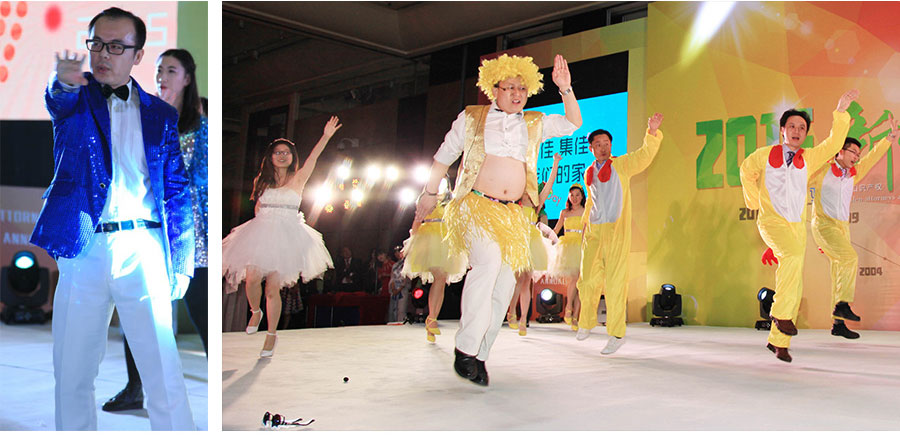 在經久不息的掌聲中,集佳20年年會會議部分圓滿結束,一曲熱情洋溢的《奔跑》活力開場,十幾位青年才俊“歌神”跳上舞臺,熟悉的旋律,高亢的領唱,歌聲很快感染了全場。《集佳,對你愛不完》、《小雞舞》、《小蘋果》、《動感現代舞》紛紛精彩上演,《歌舞串燒》更有國外客戶友情出演,還有穿越大戲《步步蛇精》,匪夷所思的故事情節吸引了眾人的眼球,《跆拳道舞》由已獲跆拳道黑帶的流程部同事領舞。集佳合伙人也全力打造三句半《四大才子夸集佳》,作為獻給集佳所有員工的一份禮物。