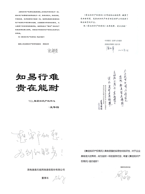 集佳知識產權周訊從創刊伊始,就用專業的視角對業界資訊進行細致而深入地收集與整理,并快速地傳遞給每位訂閱者。超過幾千名訂閱者的支持與鼓勵,使“集佳周訊”能夠堅持近6年,每周提供翔實、專業、針對性強的知識產權資訊及文章。而閱讀“集佳周訊”也成為越來越多知識產權人士了解資訊、學習經驗、交流爭鳴的快速通道。