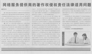 集佳律師文章《網絡服務提供商的著作權侵權責任法律適用問題》在《中國貿易報》發表