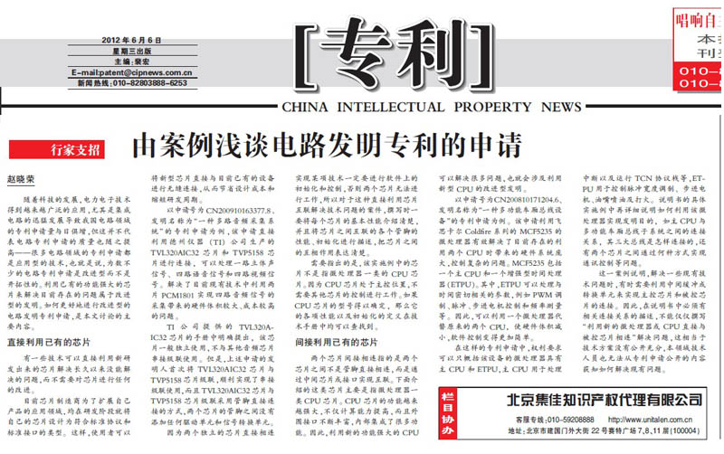 《中國知識產權報》:由案例淺談電路發明專利的申請