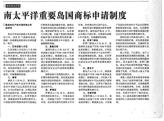 《國際商報(bào)》:南太平洋重要島國商標(biāo)申請制度