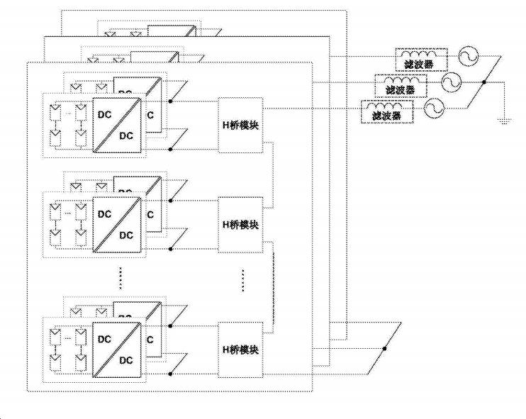 1、一種中高壓光伏發電系統,其特征在于,包括三相濾波器和三個分別通過所述三相濾波器以星形或三角形接法實現連接的相電路,所述相電路中包括一個或者兩個串聯的橋臂,所述橋臂包括:至少一個級聯模塊、至少一個光伏組串和至少一個絕緣子,所述光伏組串包括多個光伏組件;所述橋臂中: