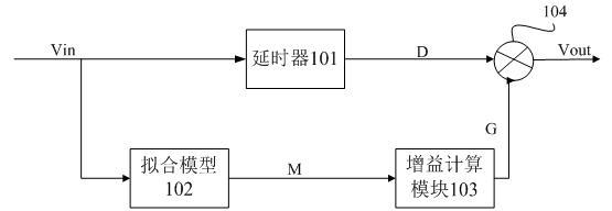 例如,在下述一件美國專利申請中,公開了一種信號處理辦法,通過預設的擬合模型擬合計算出輸入信號的擬合幅度,對擬合幅度進行判斷并根據判斷結果進行處理得到對應的增益信號,基于增益信號對延時處理輸入信號得到的延時信號進行處理得到的輸出信號。通過上述結構簡單的信號處理裝置及系統進行信號處理,不僅計算量小,而且還能提高處理信號的效率和處理效果。具體結構請參見下述附圖。