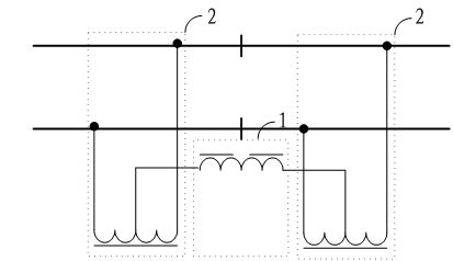 參見圖1所示,示出了權(quán)利要求1所要求保護(hù)的技術(shù)方案的示意圖,其中1代表安全型回流電抗器,2代表扼流變壓器,安全型回流電抗器串聯(lián)連接在設(shè)置于機(jī)械絕緣節(jié)兩端的相鄰所述扼流變壓器的橫連中心線處,設(shè)置安全型回流電抗器的目的是保證音頻制式軌道電路的斷軌檢查。