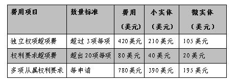 PCT國際申請進入美國國家階段費用如表1-2-4所示。