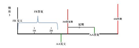(1)情形1、申請人于FR發文日起的2個月內完成答復,審查員在3個月答復期內發出AA,若AA答復日晚于3M法定期限,則延期自3M法定期限起算。