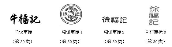 商評委經(jīng)審理認為:爭議商標(biāo)由文字“牛福記”構(gòu)成,與引證商標(biāo)中顯著識別部分的文字“徐福記”僅一字之差,在文字設(shè)計風(fēng)格和視覺效果等方面相近,爭議商標(biāo)與引證商標(biāo)已構(gòu)成近似商標(biāo)。爭議商標(biāo)指定的糖、餅干等商品與引證商標(biāo)核定使用的糖果、糕點等商品在功能、用途、銷售渠道等方面存在相同或相近之處。申請人提交在案證據(jù)顯示“徐福記及圖”商標(biāo)經(jīng)使用在第30類糖果、糕點等商品上具有較高的知名度,被申請人在應(yīng)當(dāng)知曉申請人商標(biāo)知名度的情況下仍然注冊爭議商標(biāo)的行為難謂正當(dāng)。因此,爭議商標(biāo)與引證商標(biāo)構(gòu)成使用在相同或類似商品上的近似商標(biāo)。爭議商標(biāo)予以無效宣告。