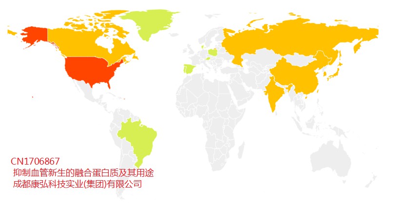 在獲獎專利中,同族數量排名第一的是成都康弘科技實業(集團)有限公司的【CN1706867-抑制血管新生的融合蛋白質及其用途】,該專利不僅經歷過無效考研,還擁有多達25個專利族,在14個國家獲得了授權。