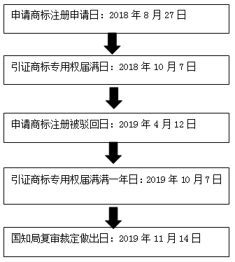 可見,對于期滿不再續(xù)展的在先商標(biāo),第五十條規(guī)定的一年期的計(jì)算是從該商標(biāo)專用權(quán)屆滿日至做出審查決定之時(shí)。