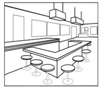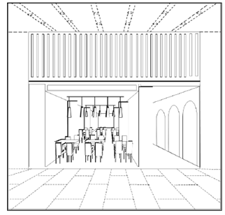 如需在一件商標申請中,同時遞交店面外觀和內(nèi)飾裝潢的設(shè)計,可繪制在一張圖片里,如以下示例4(分開繪制則將認定為兩份申請)。