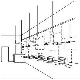 如提交店面外觀和內(nèi)部裝潢的立體商標申請,可通過在圖片中表明虛實線,同時通過商標描述告知“虛線僅表示店面形狀的示例,并不構(gòu)成商標的一部分”,以表明要求受該立體商標保護的部分僅為以下圖片中的實線,如以下示例2和示例3所示。