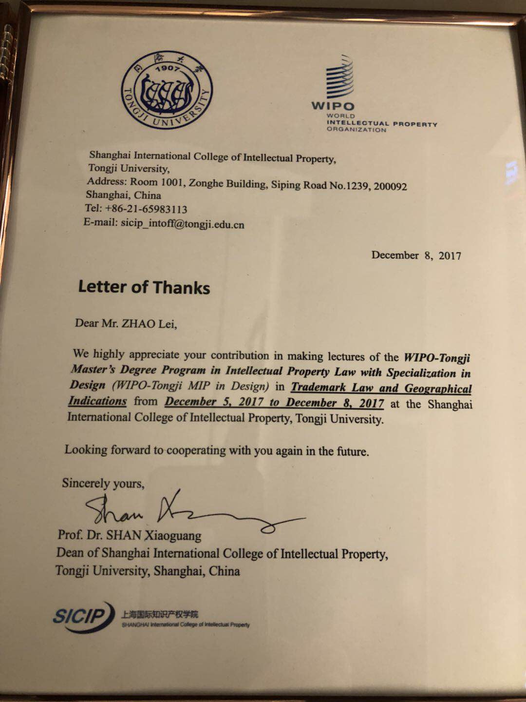 2017年12月5日到8日,集佳合伙人趙雷律師應邀前往上海,受聘兼職教授為首屆上海國際知識產權學院的2017屆新生進行授課講學。上海國際知識產權學院成立于同濟大學,為培養知識產權國際化人才開展的世界知識產權組織—同濟大學聯合培養知識產權法碩士項目。本屆新生匯集了包含中國在內的21個國家的學生,涵蓋了非洲、歐洲、拉美和亞洲的多個國家和地區,其中一部分是其所在國家商標局、版權局的現任審查員、仲裁員、律師。