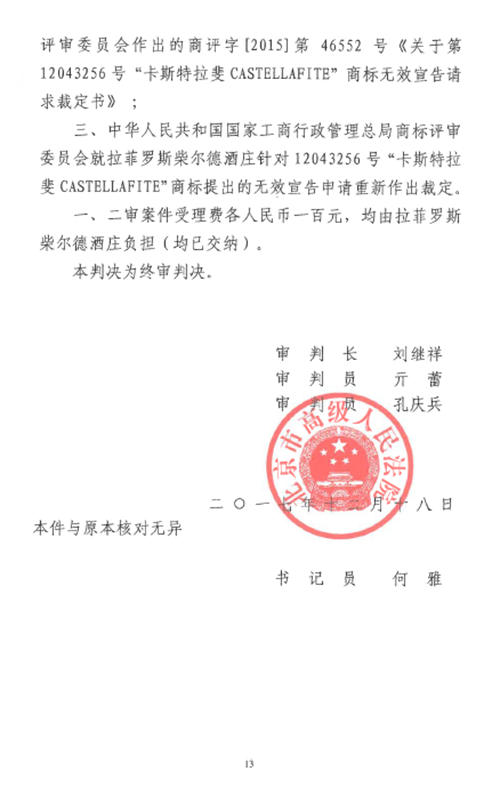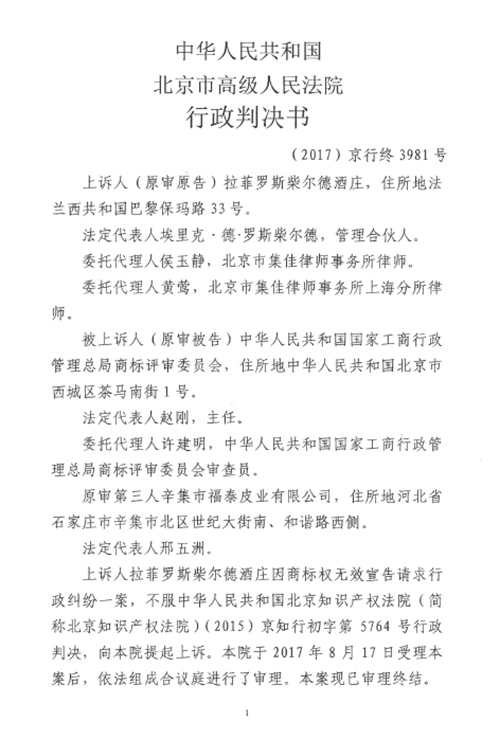 另附北京高院就本案做出的(2017)京行終3981號(hào)二審判決書: