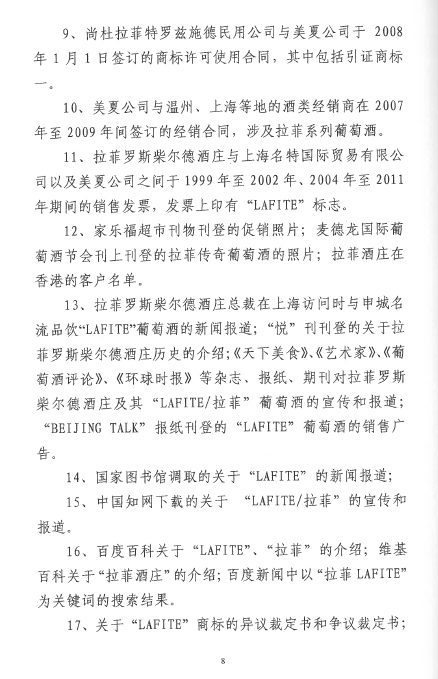 自2016年以來,商評(píng)委、北京知識(shí)產(chǎn)權(quán)法院已經(jīng)先后在十幾個(gè)裁定或行政判決中認(rèn)定“LAFITE”為馳名商標(biāo),但大多還在行政訴訟程序之中。本案是首個(gè)終審判決,對(duì)“LAFITE”在中國的馳名商標(biāo)保護(hù)之路,具有里程碑式的重要意義。