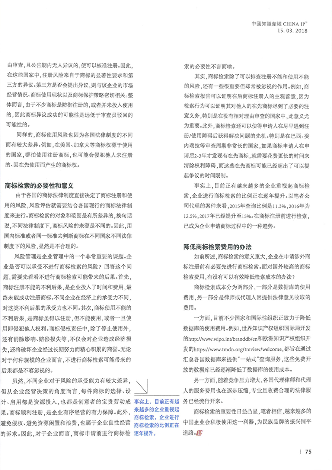 集佳文章《涉外商標(biāo)保護之商標(biāo)檢索的意義和現(xiàn)狀》在《中國知識產(chǎn)權(quán)》發(fā)表