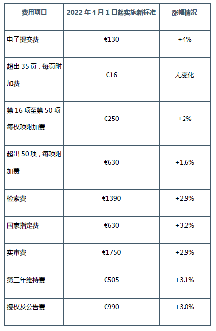 歐洲發明官費自2022年4月1日起上漲約3%