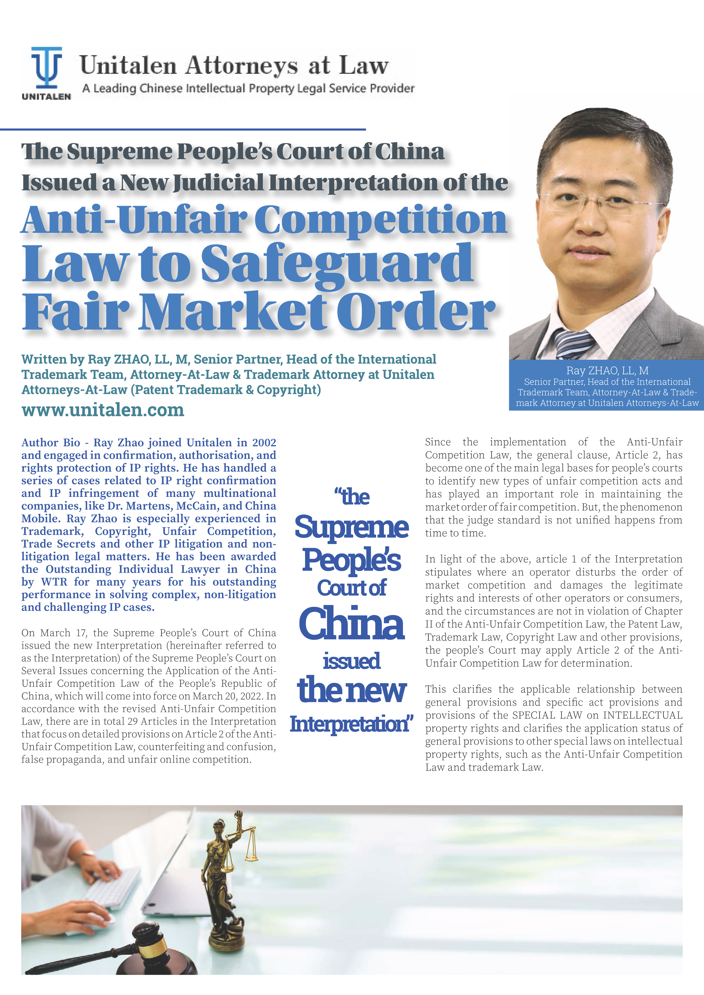 集佳合伙人趙雷律師文章《The Supreme People's Court of China Issued a New Judicial Interpretation of the Anti-Unfair Competition Law to Safeguard Fair Market Order》在《The Global IP Matrix Issue 13》發(fā)表