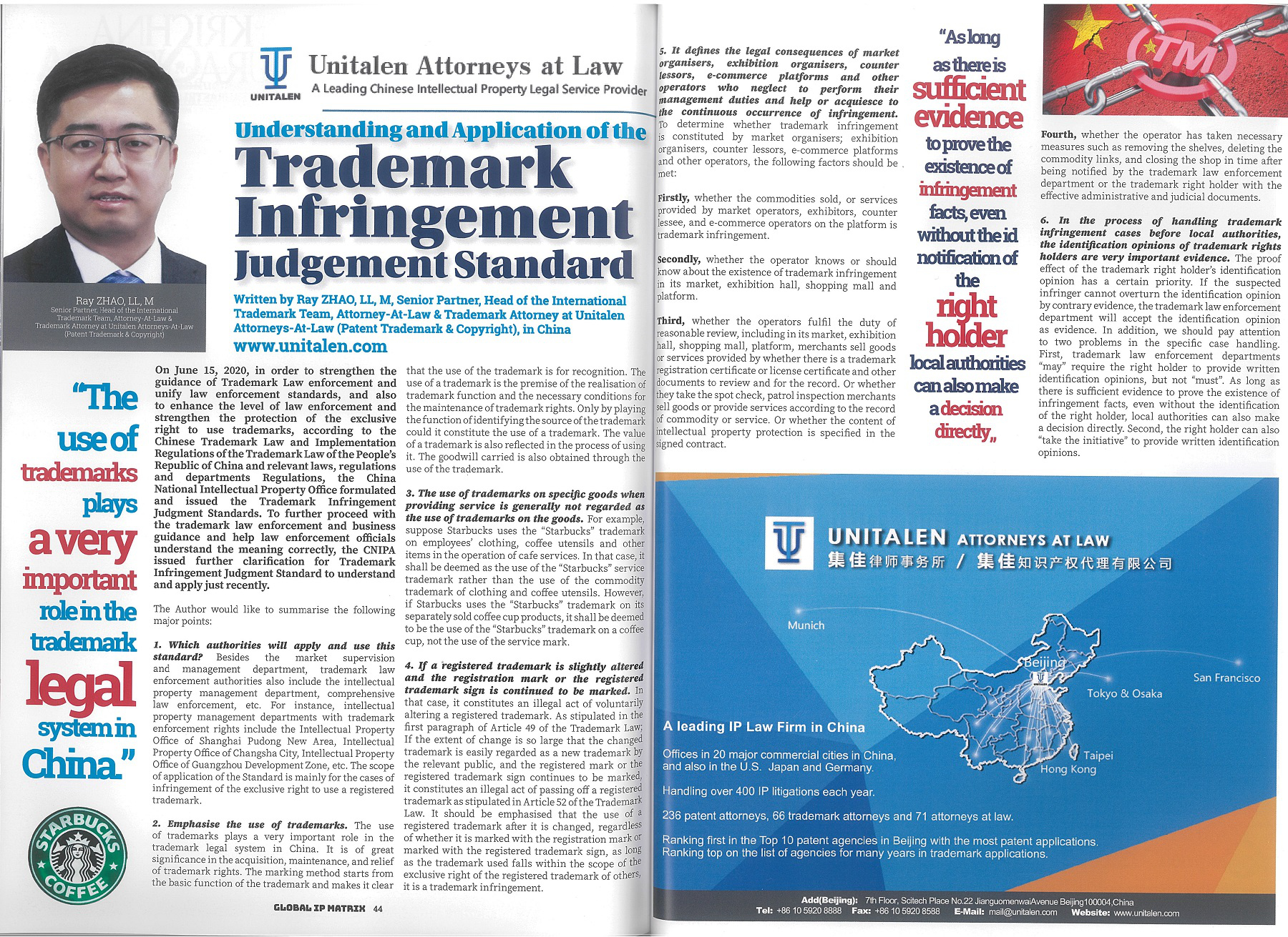 集佳合伙人趙雷律師文章《Understanding and application of Trademark Infringement Judgment Standard》在《The Global IP Matrix ISSUE 14》發表