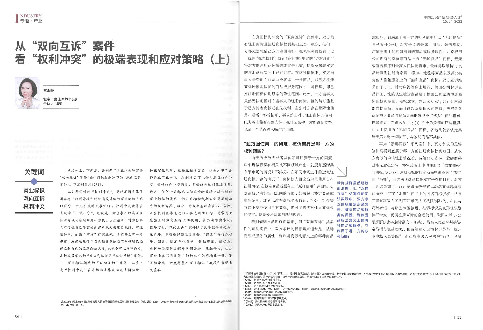 集佳文章《從“雙向互訴”案件看“權(quán)利沖突”的極端表現(xiàn)和應(yīng)對策略(上)》在《中國知識產(chǎn)權(quán)》發(fā)表