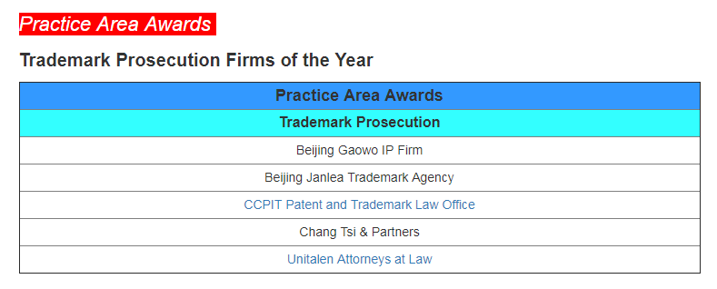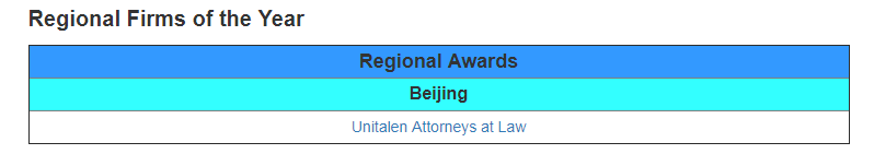 Recently, the international authoritative intellectual property media "Asia IP" released the list of winners of the 2023 China IP Awards. With the outstanding performance, industry reputation, and market evaluation in the field of intellectual property business, Unitalen has been listed on the four recommendation lists of "Trademark Prosecution", "Patent Prosecution", "Patent Litigation", and "Enforcement Firms of the Year", and won the award "Regional Firms of the Year (Beijing)" consecutively!
