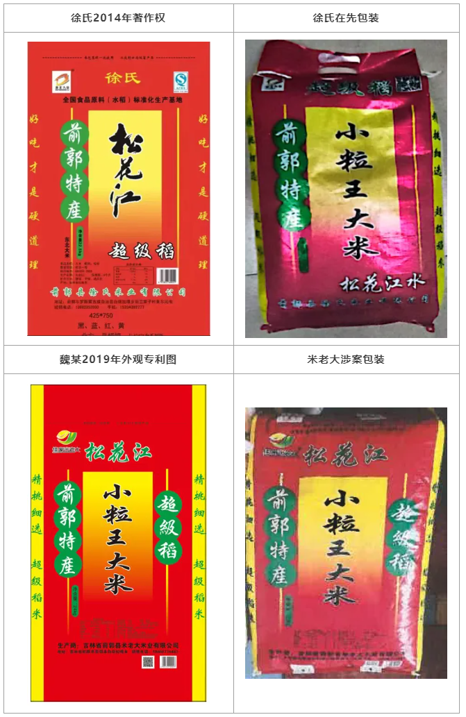 對(duì)該爭(zhēng)議焦點(diǎn),集佳律師主要從原告徐氏公司的小粒王大米在蒙自地區(qū)的銷(xiāo)售時(shí)間、銷(xiāo)售規(guī)模方面論證其具備一定的知名度,而且,該地位于邊陲,群眾普遍對(duì)東北大米的識(shí)別能力不足,往往以大米包裝裝潢作為購(gòu)買(mǎi)的參照物。米老大米業(yè)的包裝袋與徐氏米業(yè)的包裝袋外觀上非常近似,足以混淆,因此,應(yīng)當(dāng)認(rèn)定其構(gòu)成不正當(dāng)競(jìng)爭(zhēng)行為。