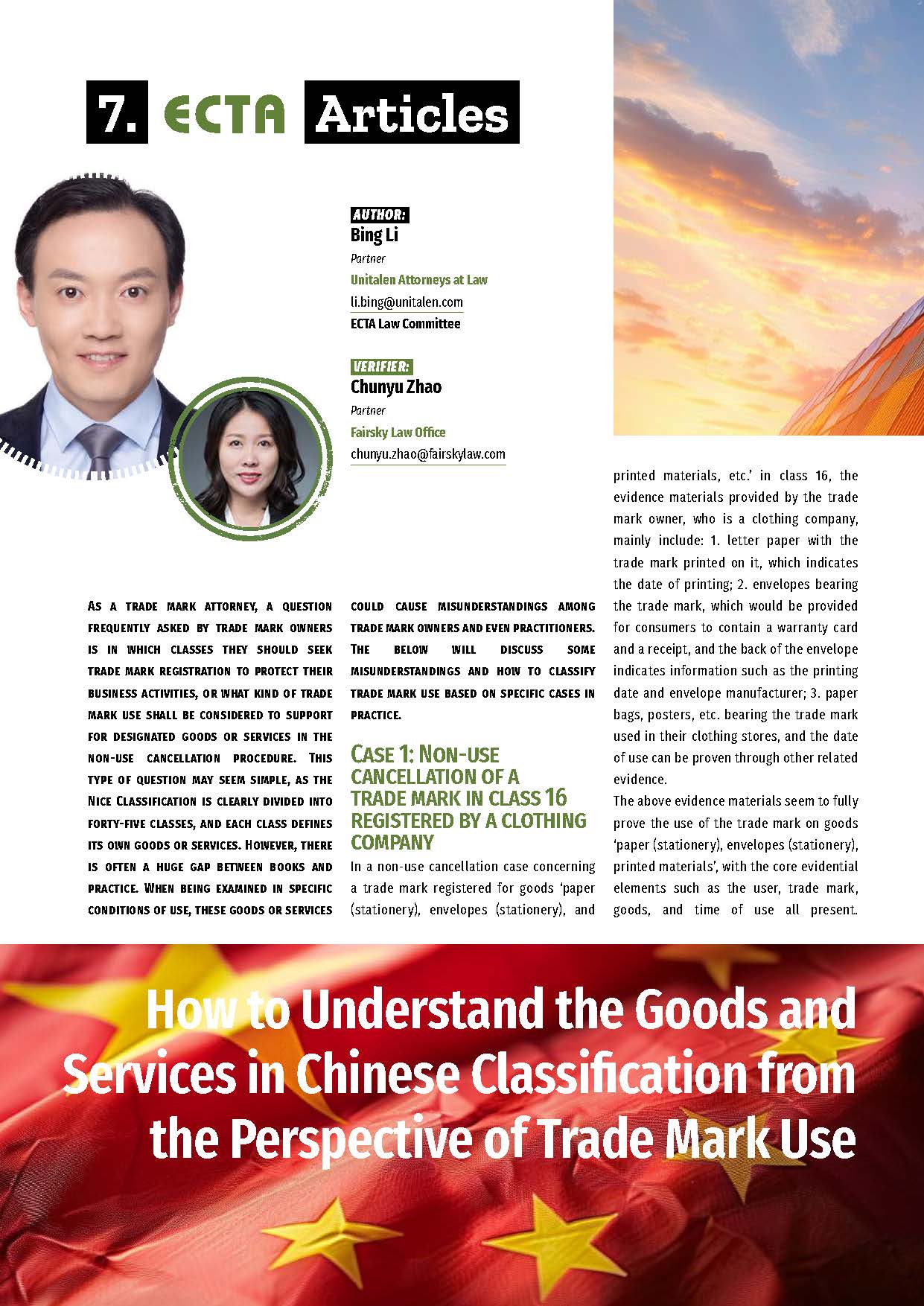 集佳文章《How to Understand the Goods and Services in Chinese Classification from the Perspective of Trade Mark Use》在《ECTA》發表