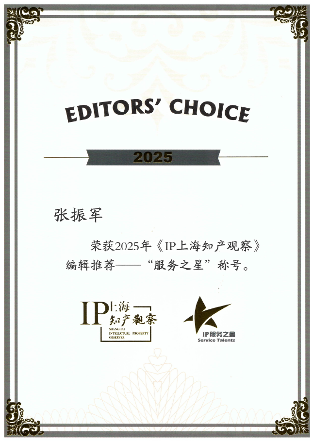 集佳上海分所張振軍律師憑借卓越的服務能力與良好的客戶口碑獲評“2025知識產權服務之星”。