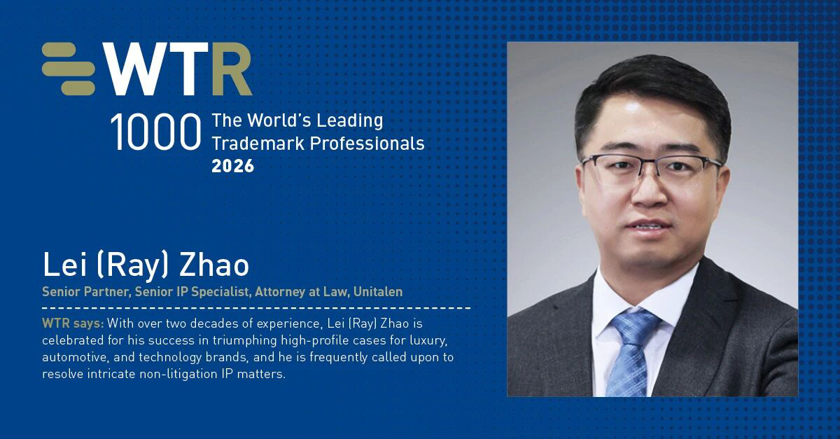 WTR評價:趙雷律師擁有二十余年的從業經驗,長期為奢侈品、汽車及科技等行業客戶處理多起具有影響力的案件,成績斐然,因而廣受業界認可,并經常受邀協助處理復雜的非訴知識產權事務。
